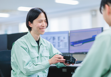 設計・開発した製品を量産化するための技術業務を担当します。具体的には、金型で作られた試作品を検証し、不具合があれば金型を玉成して、良品が製造できる金型に仕上げます。何度もトライアンドエラーを繰り返すため、粘り強さと忍耐力が求められます。